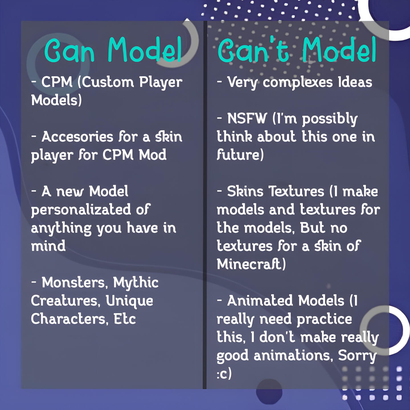 Hi!, I'm a novice modelator of the program Blockbench for Minecraft models, I hope i can do the best for all of you!,
